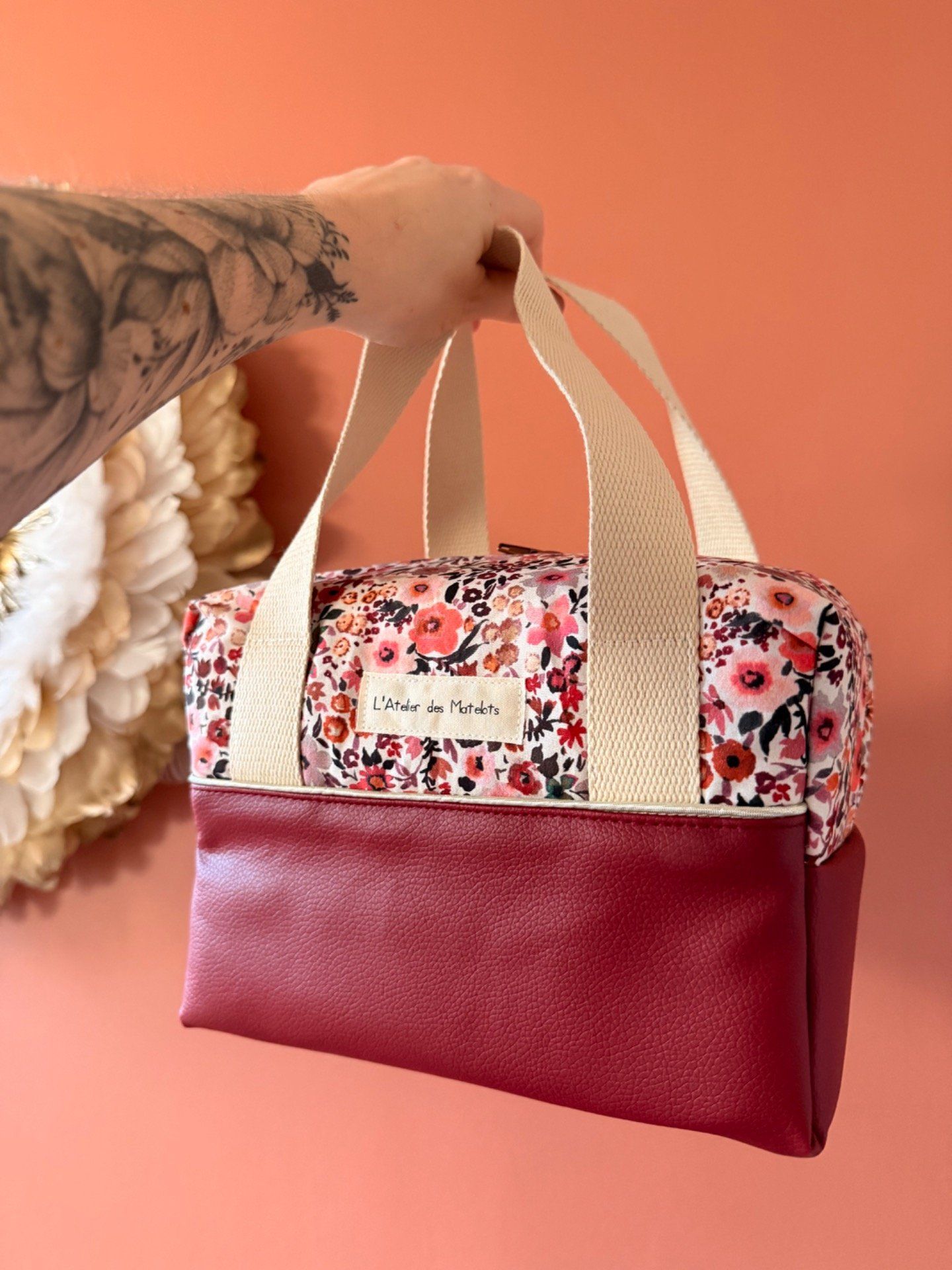 Sac repas - Lunch Bag pour adultes à personnaliser avec nos différents tissus si vous le souhaitez (cf galerie d'image) imprimés et le simili cuir de votre choix